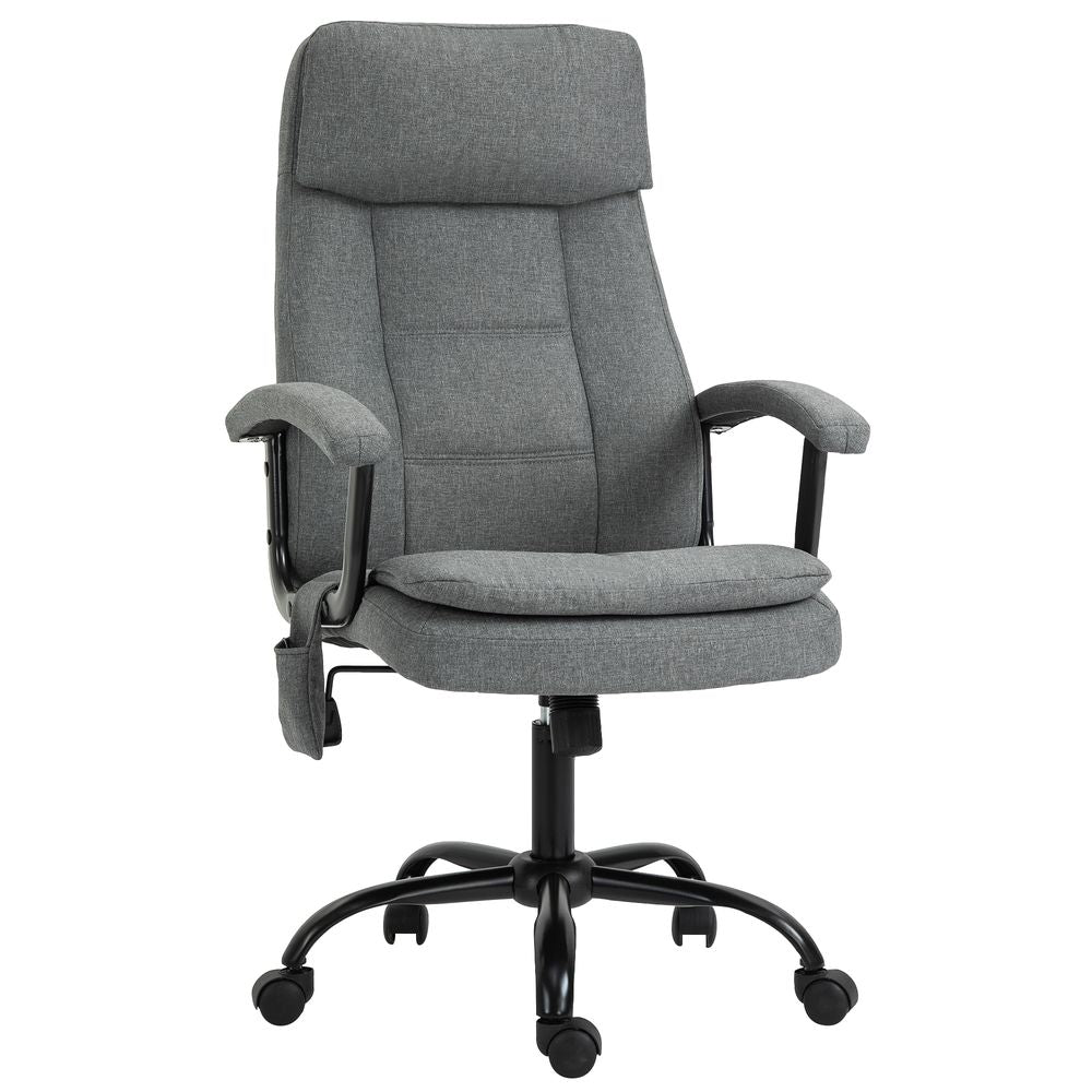 2-Point Massage Office Chair Linen-Look Fabric Adjustable Height Chair Grey