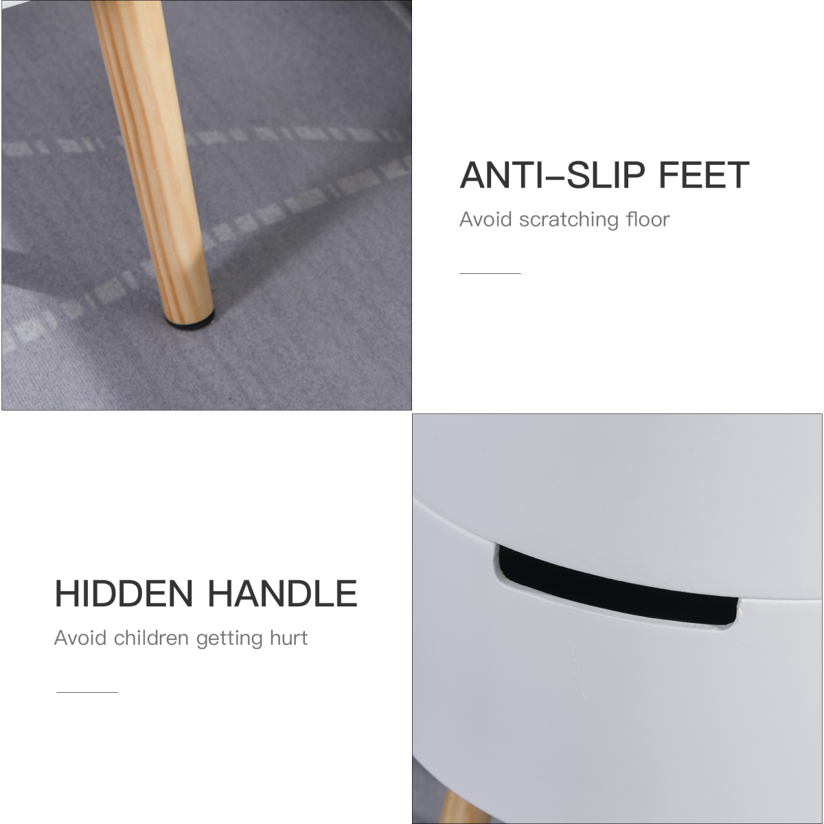 Premium White Circular Side Table Dia 16In Height 20In Removable Top Tray Dual Storage Nightstand And Coffee Table