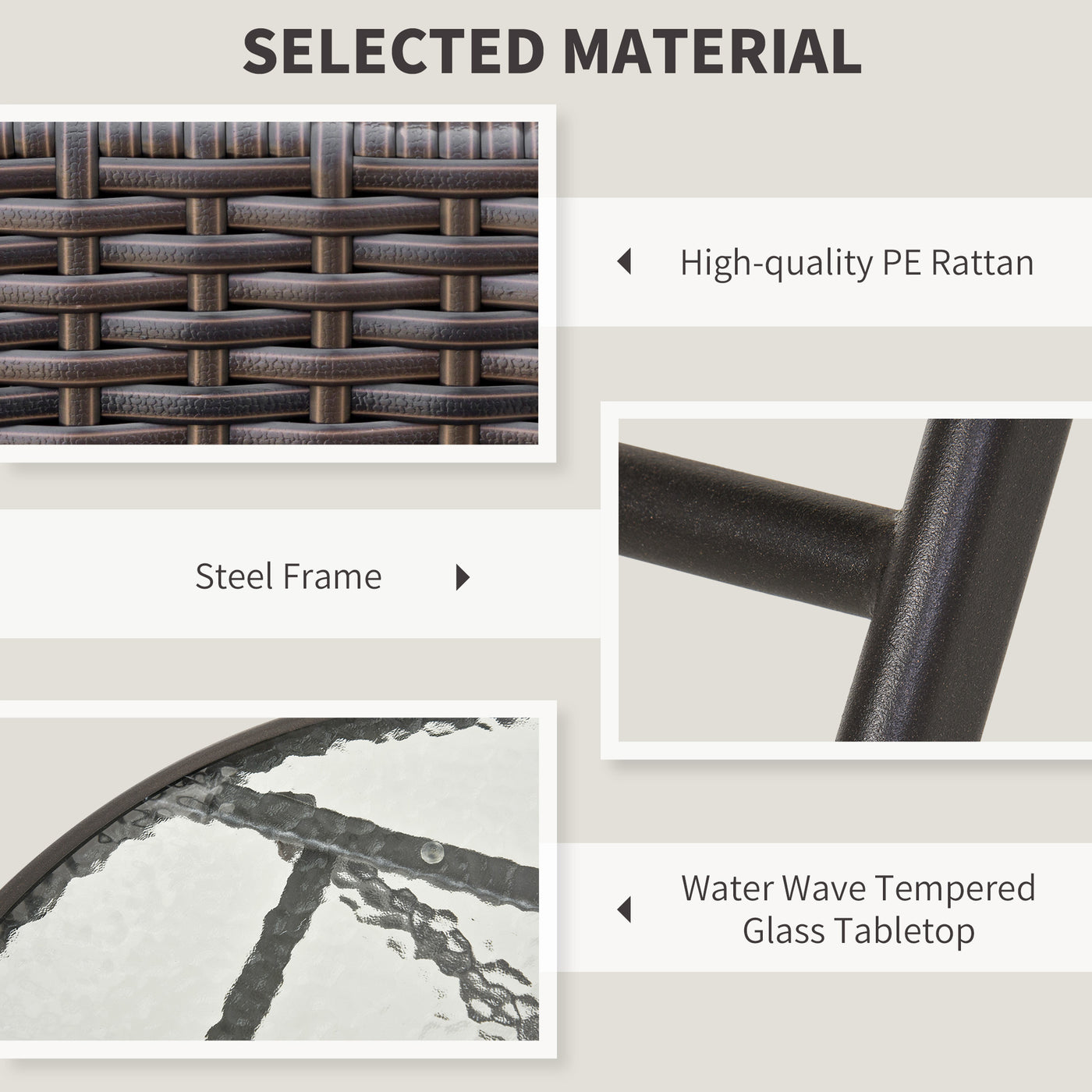 3pc Wicker Rattan Bistro Set-Brown