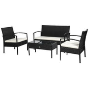 4-Seater Rattan Garden Furniture Set Black Cream Outdoor Patio Bistro