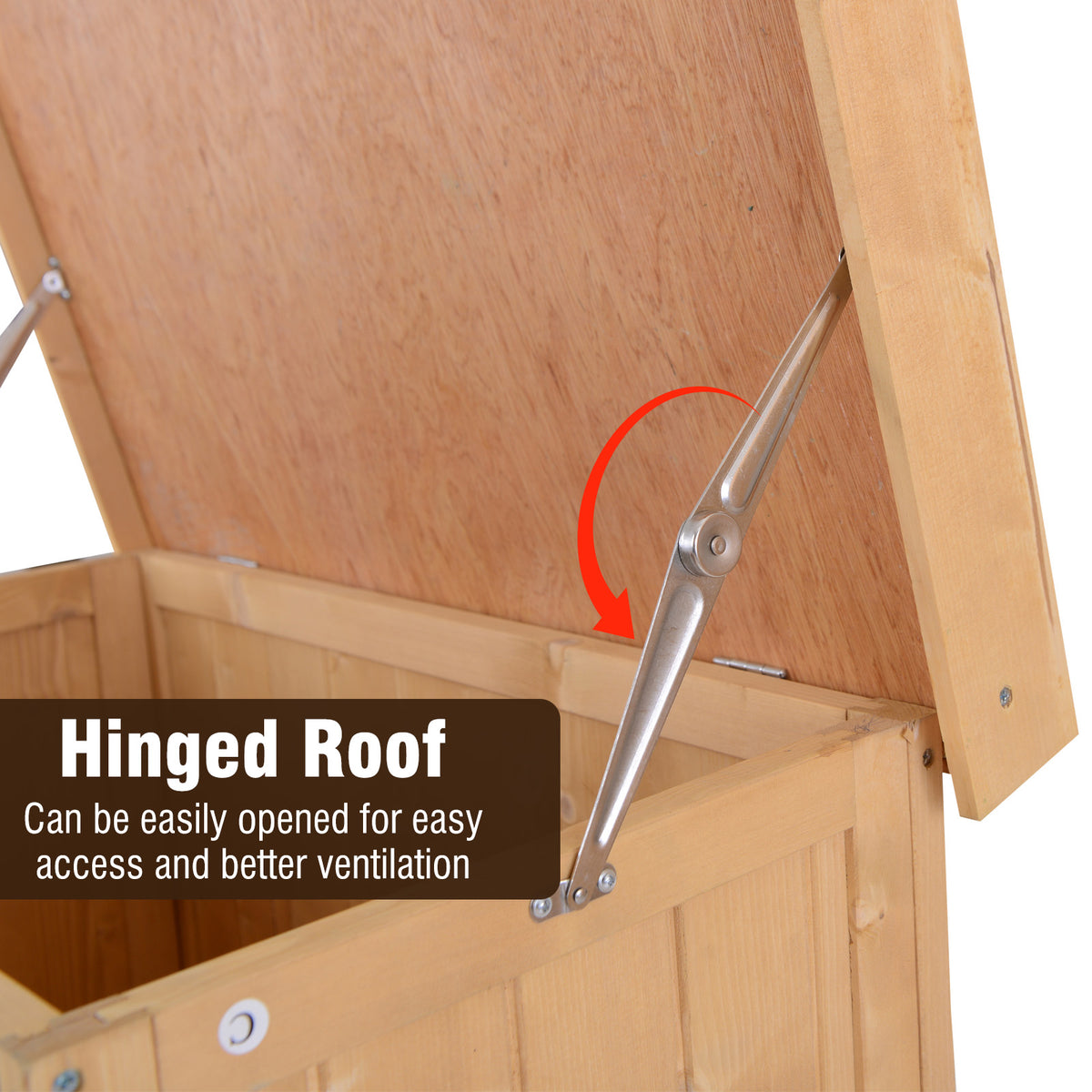 74x43x88cm Garden Shed Storage Wooden Chest Double Doors Shelf Hinged Roof - Burlywood