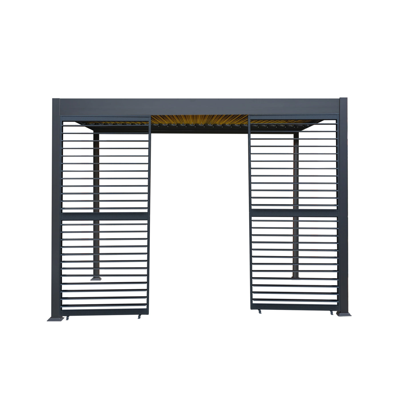 Premium Anthracite Aluminium Pergola 3m x 3m With LED Lights And Dual Shutter Panels