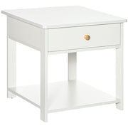Bedroom Bedside Table, Sofa Side Table with Drawer and Shelf, White