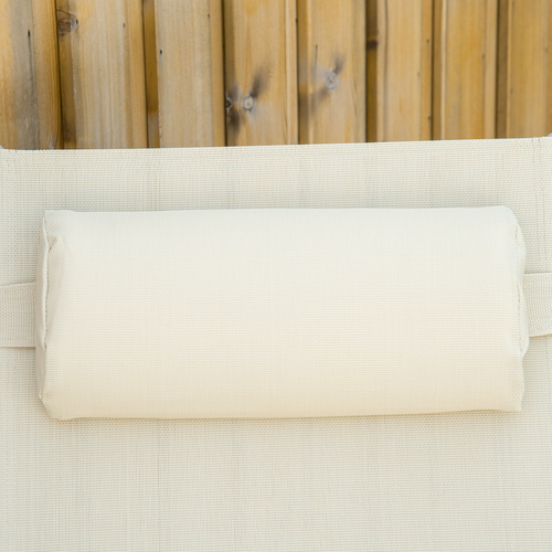 Beige Folding Chaise Lounge Chair with Seven Adjustable Backrest for Outdoor Relaxation