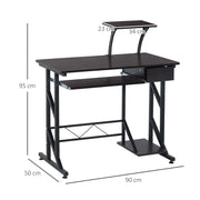 Computer Desk Quality Office Home PC Shelf Tray Wood Station Dark Brown HOMCOM
