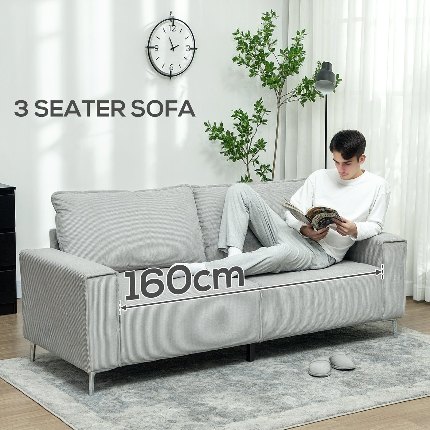 Cosy Corduroy Sofa Three Seater Grey Upholstered Living