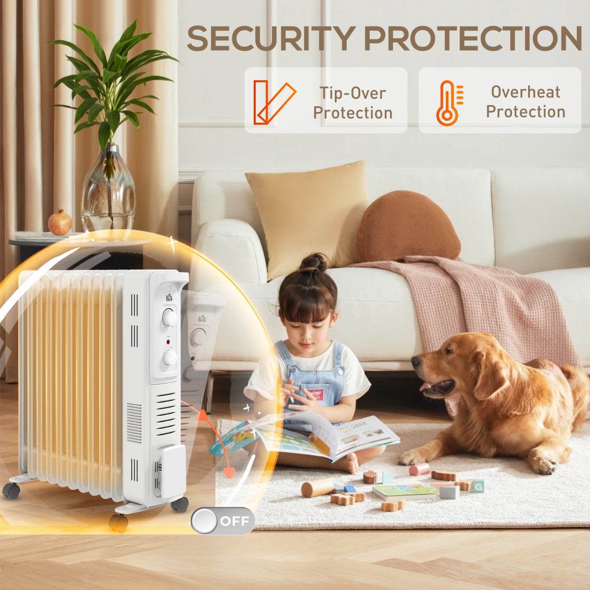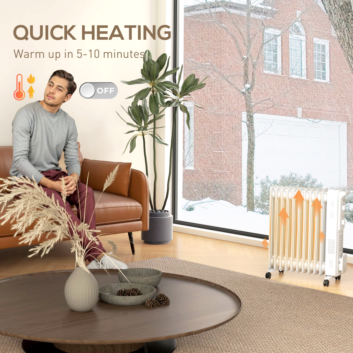 HOMCOM Oil Filled Heater 7 Fin Radiator 1500W Quiet Energy Efficient Home Use Living Room - 24W x 52.5D x 64Hcm