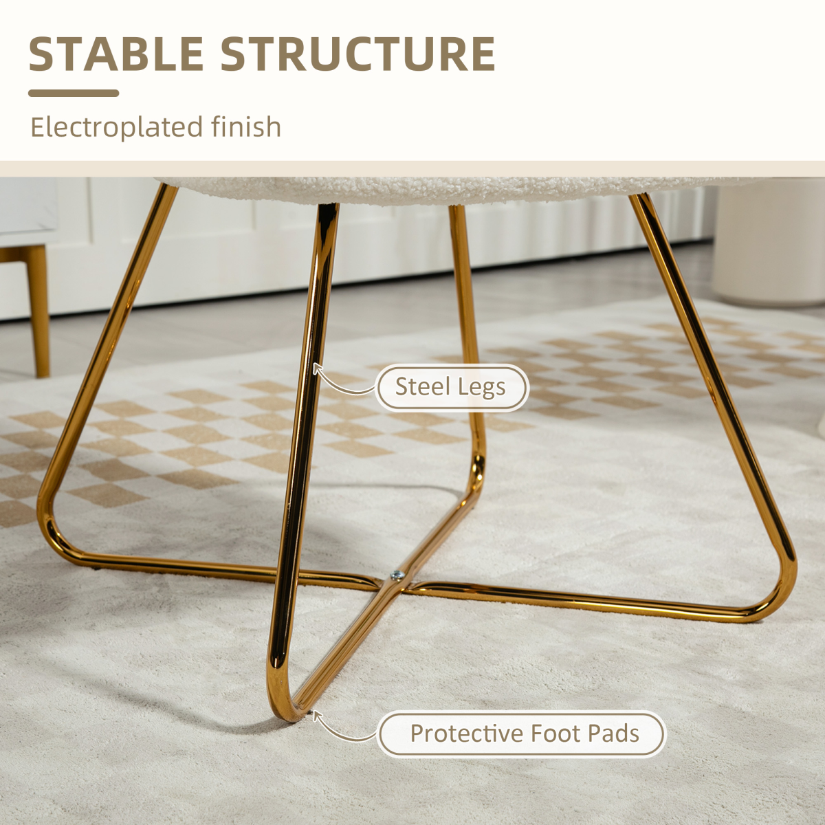 HOMCOM Accent Chair Set 2 Compact Cream Cashmere Gold Legs