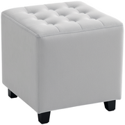 HOMCOM Compact Velvet Tufted Square Footstool With Wood Legs For Bedroom Light Grey