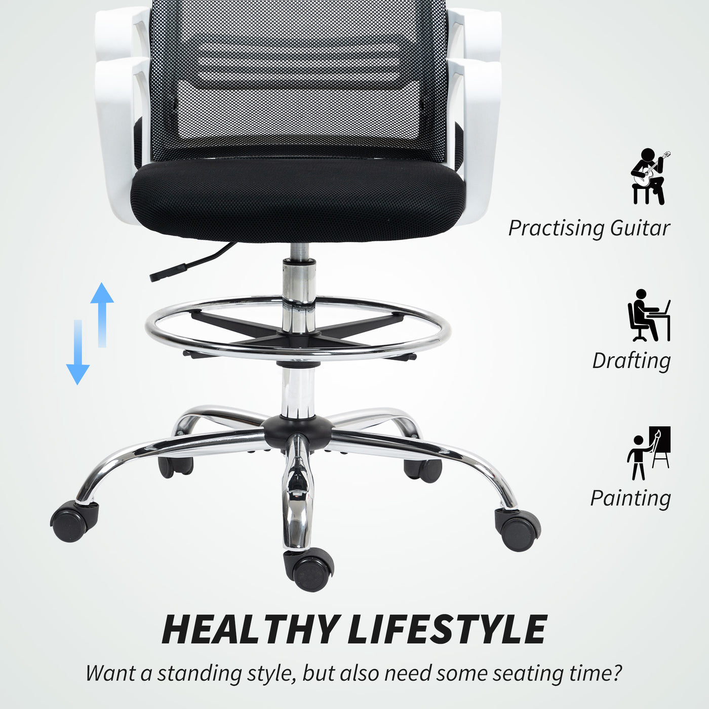 HOMCOM Draughtsman Chair Mesh Ergonomic Drafting Office