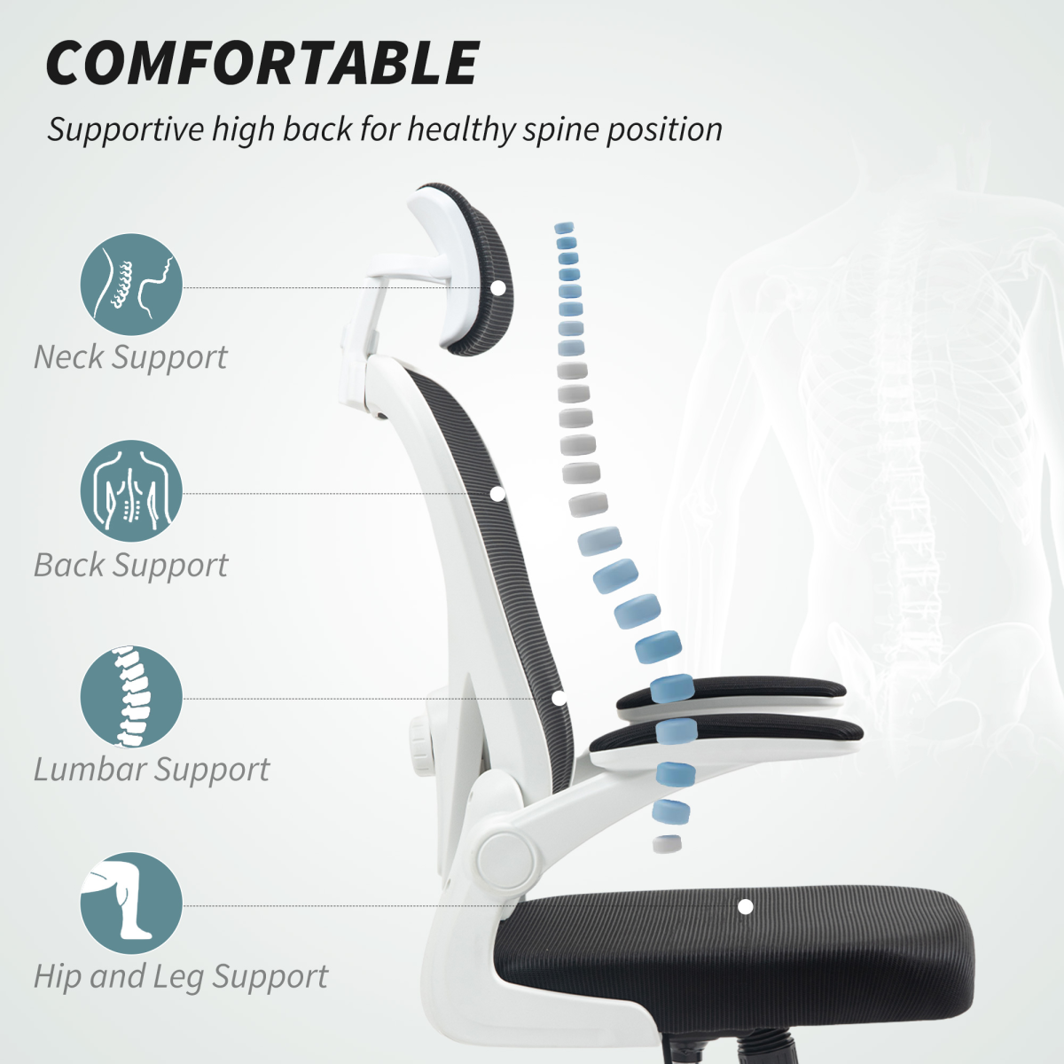 HOMCOM Executive Mesh Chair Headrest Lumbar for Home Office