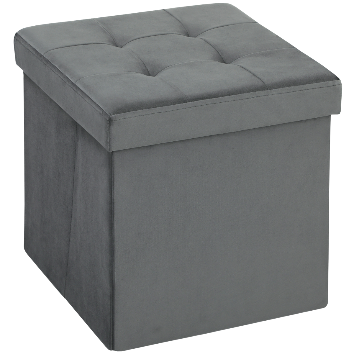 HOMCOM Foldable Velvet-Feel Storage Ottoman, 38 x 38 x 38 cm, Grey - Grey