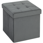 HOMCOM Foldable Velvet-Feel Storage Ottoman, 38 x 38 x 38 cm, Grey
