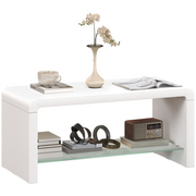 HOMCOM High Gloss Storage Coffee Table Two Tier White With Glass Shelf For Living Room