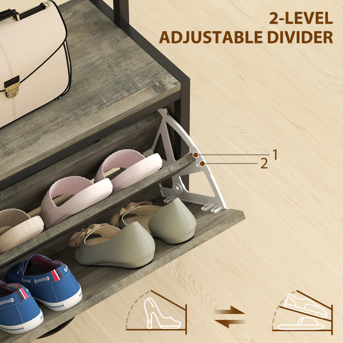 HOMCOM Industrial Hall Tree Coat Rack With Shoe Cabinet Grey Tall 5 In 1 Organizer For Hallways - Grey