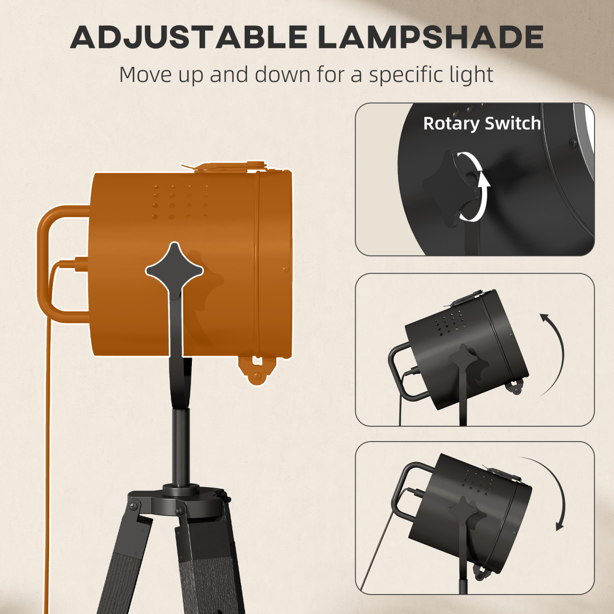 HOMCOM Tripod Floor Lamp Wood Height Adjustable