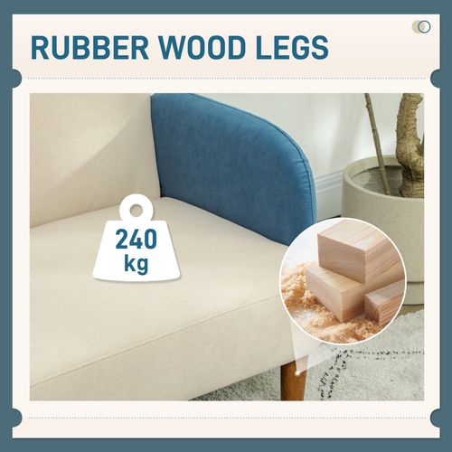 HOMCOM Modern 2 Seater Sofa w/ Rubber Wood Legs 130 x 74 x 76cm - Cream White and Blue