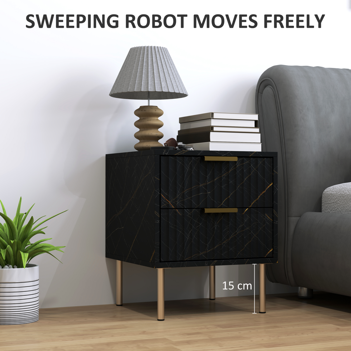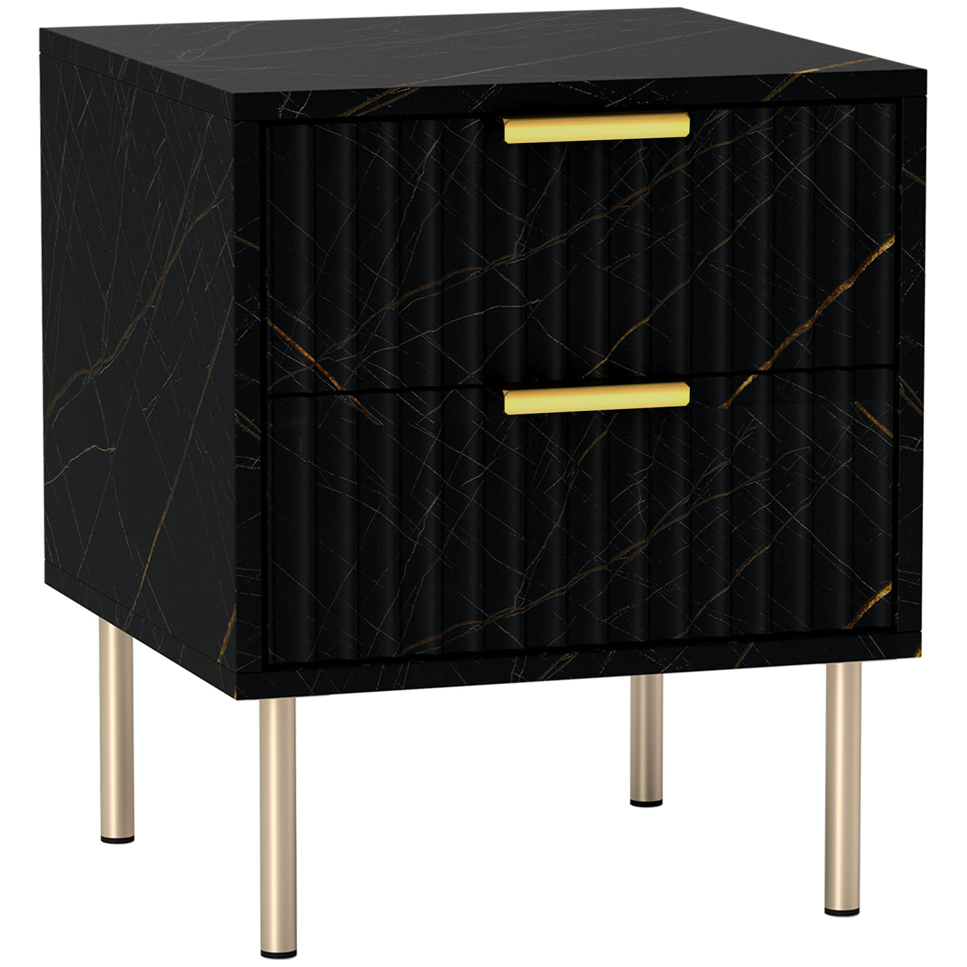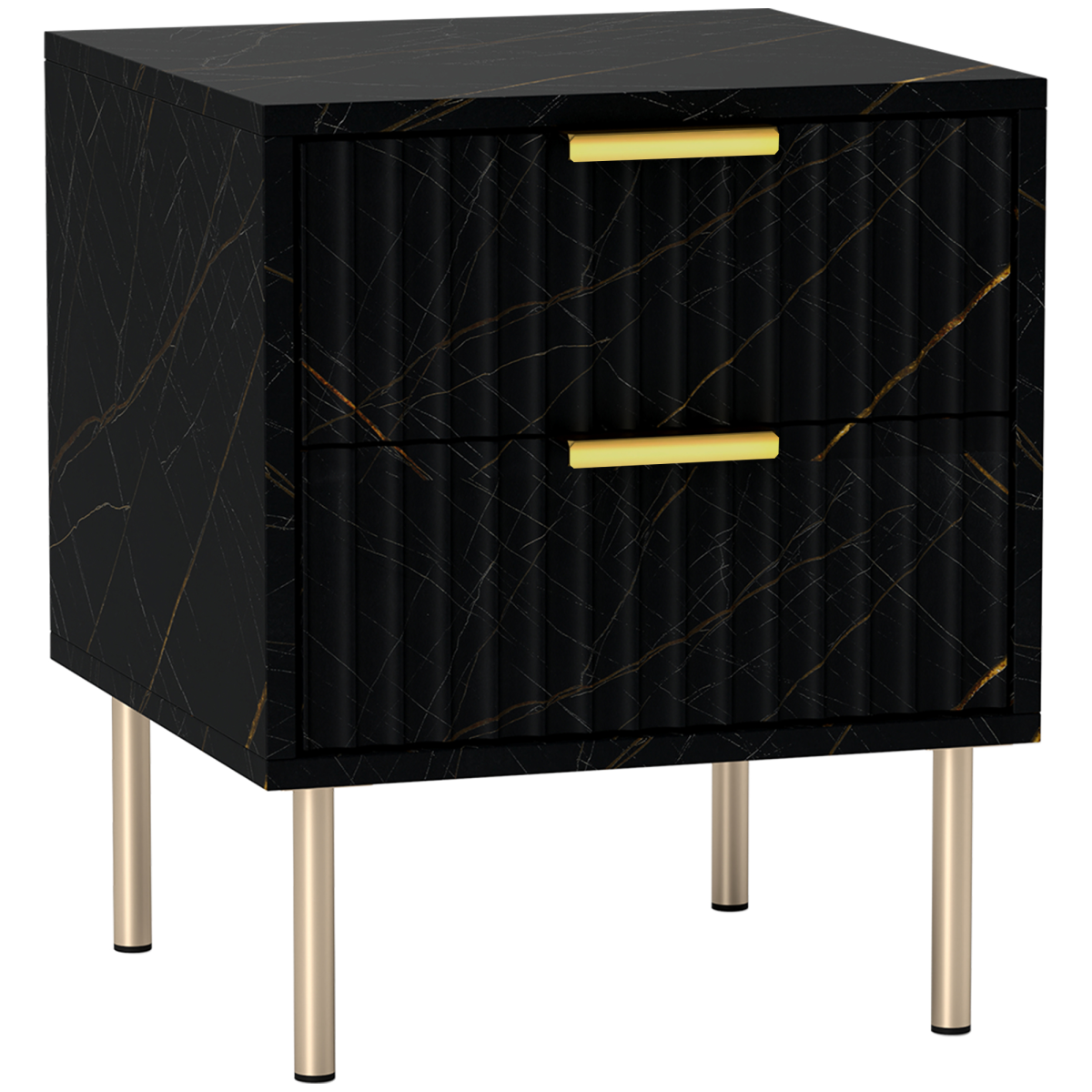 HOMCOM Nightstand Compact 2 Drawer Marble Bedroom