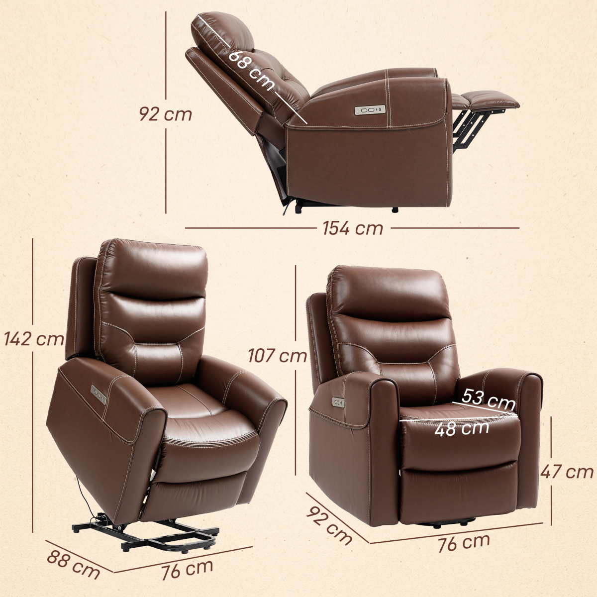 HOMCOM Riser Recliner Compact USB Ports Remote for Seniors - Brown