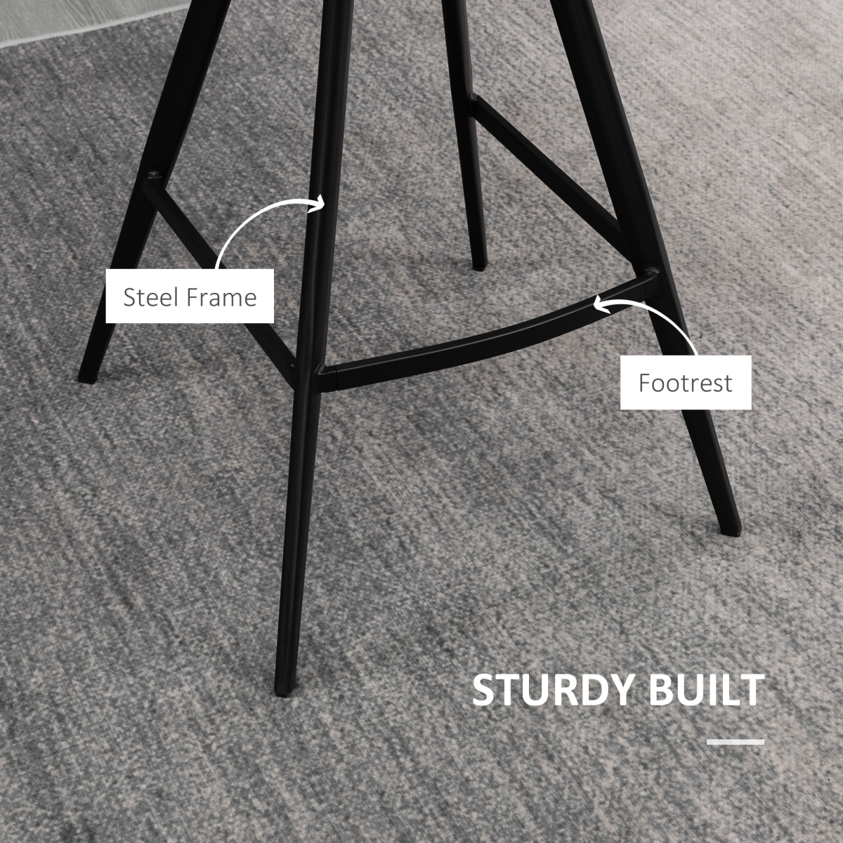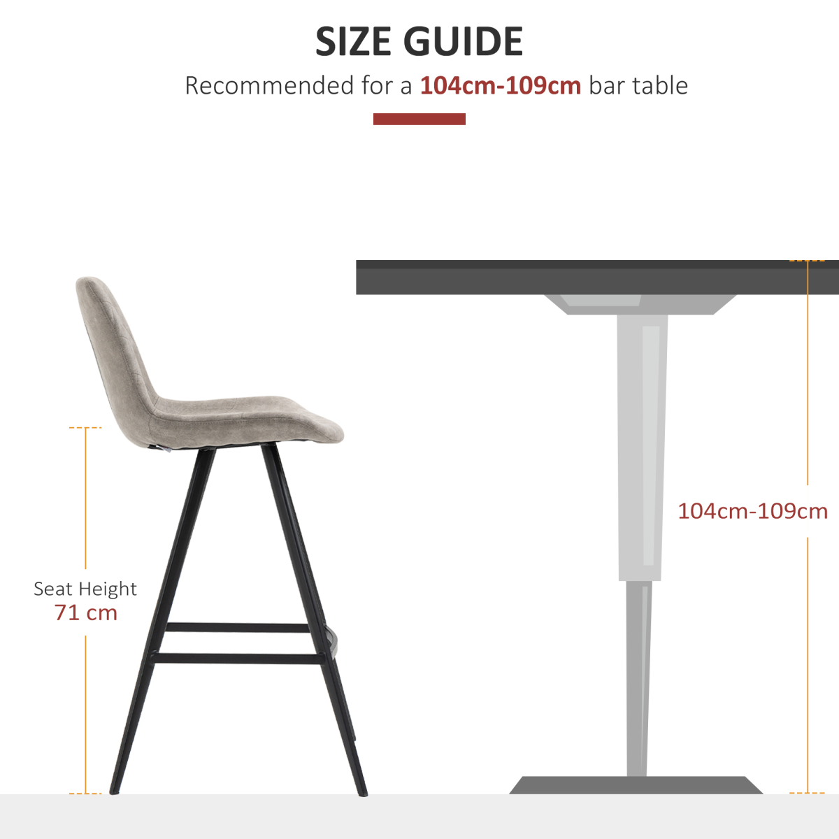 HOMCOM Set Of 2 Bar Stools Vintage Microfiber Cloth Tub Seats Padded Steel Grey