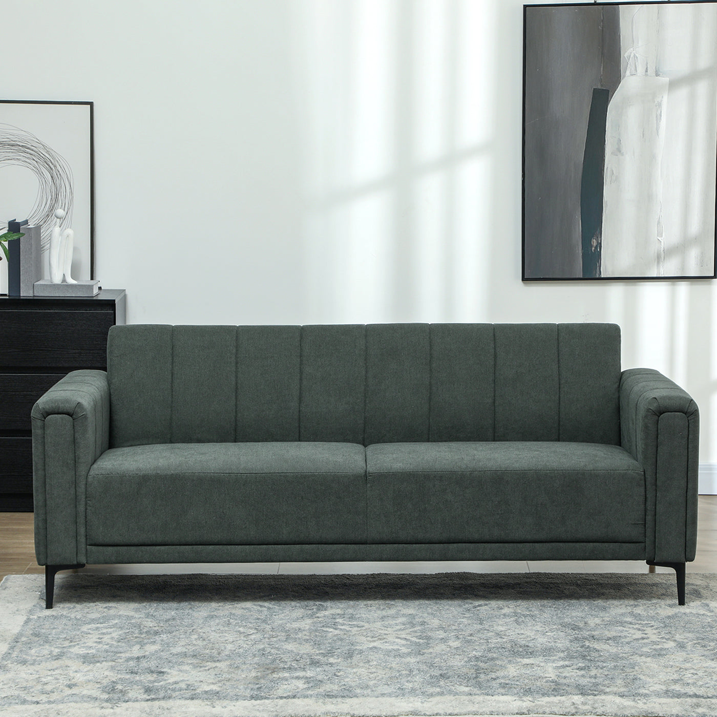 HOMCOM Three Seater Sofa Full Size Channel Tufted For Home