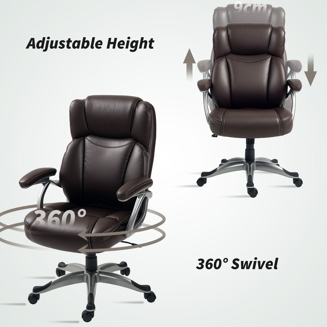 HOMCOM Tilting Executive Office Chair, PU Leather Desk Chair - Brown