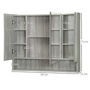 kleankin Bathroom Mirror Cabinet, Wall Mounted 3 Doors and Cupboards, Grey