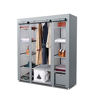 Knight Large Portable Canvas Wardrobe 150cm x 45cm x 175cm with Hanging Rail Shelves and Drawer for Organized Clothes Storage