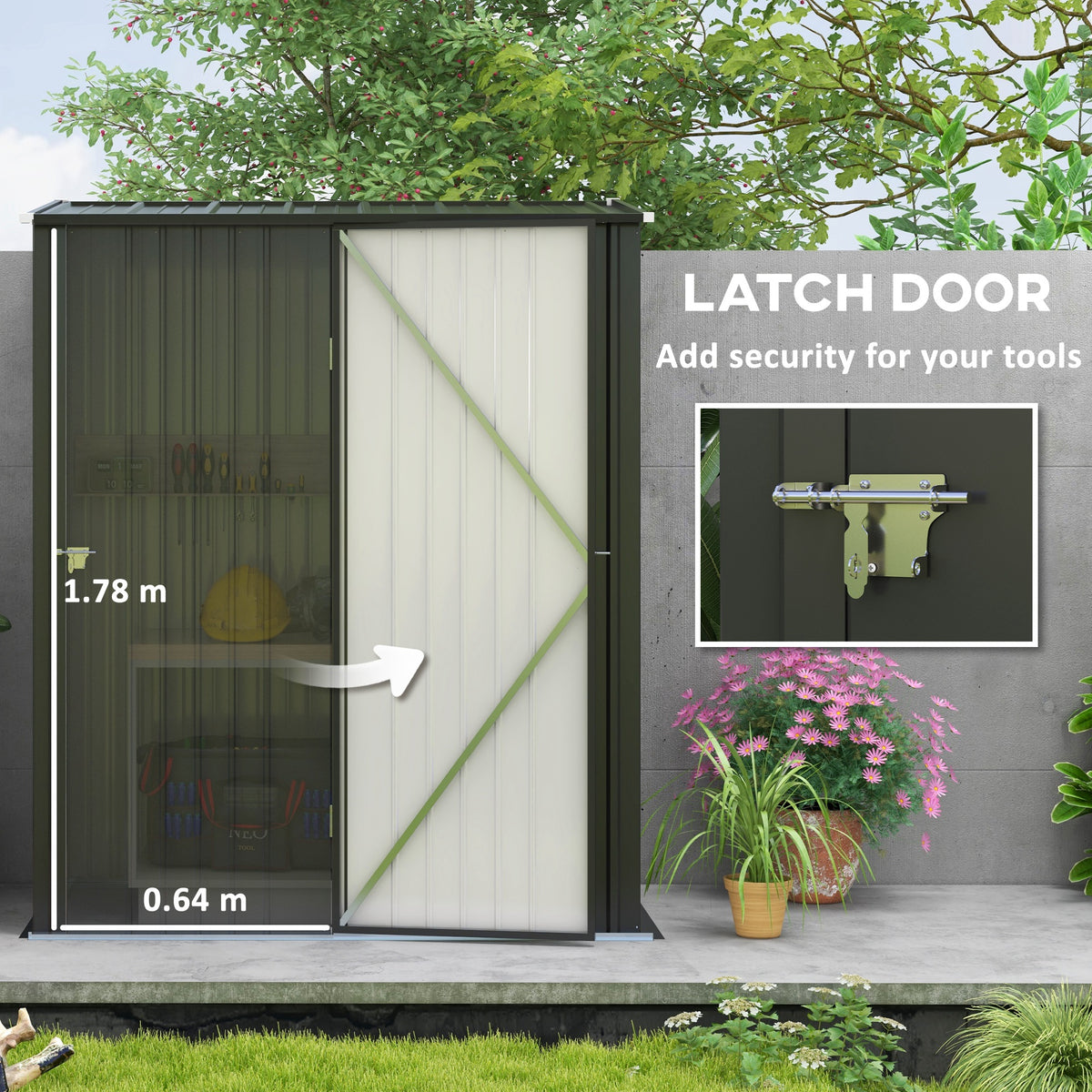 Outdoor Storage Shed Steel Garden Shed w/ Lockable Door for Backyard Patio Lawn
