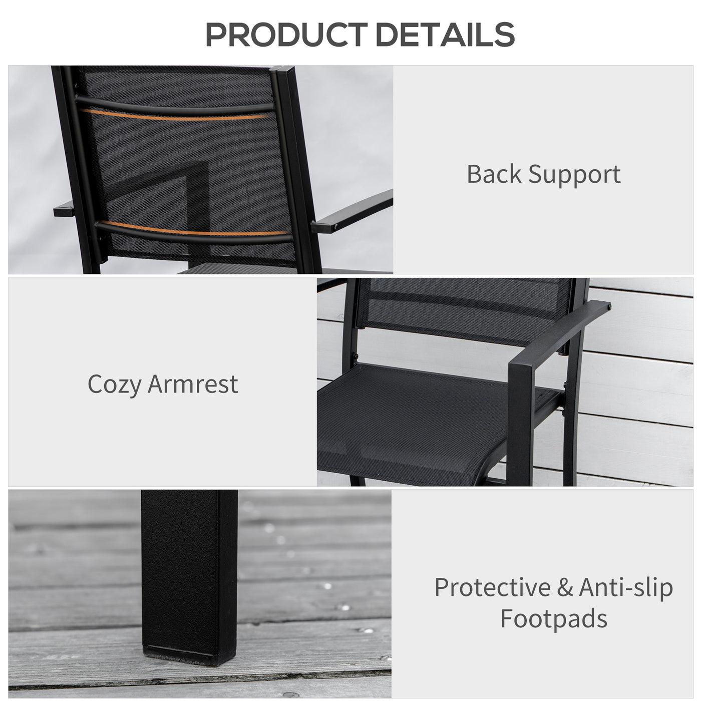 Outsunny 2 PCs Patio Dining Chair Outdoor Mesh Seat Bistro Chair Black - Black