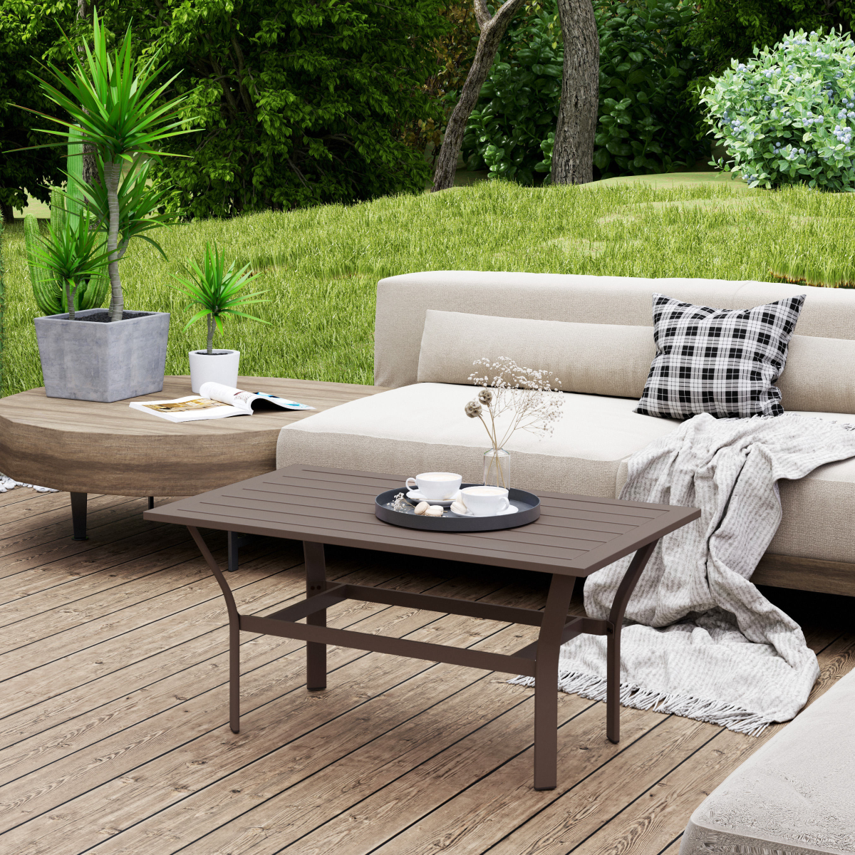 Outsunny Outdoor Coffee Table 91.5 X 55 Cm Slatted Top Weatherproof Metal Frame For Garden - Brown