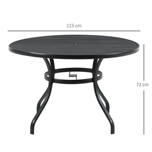 Outsunny Round Garden Table 115 x 72H cm with Parasol Hole for Outdoor Dining Groups - Black