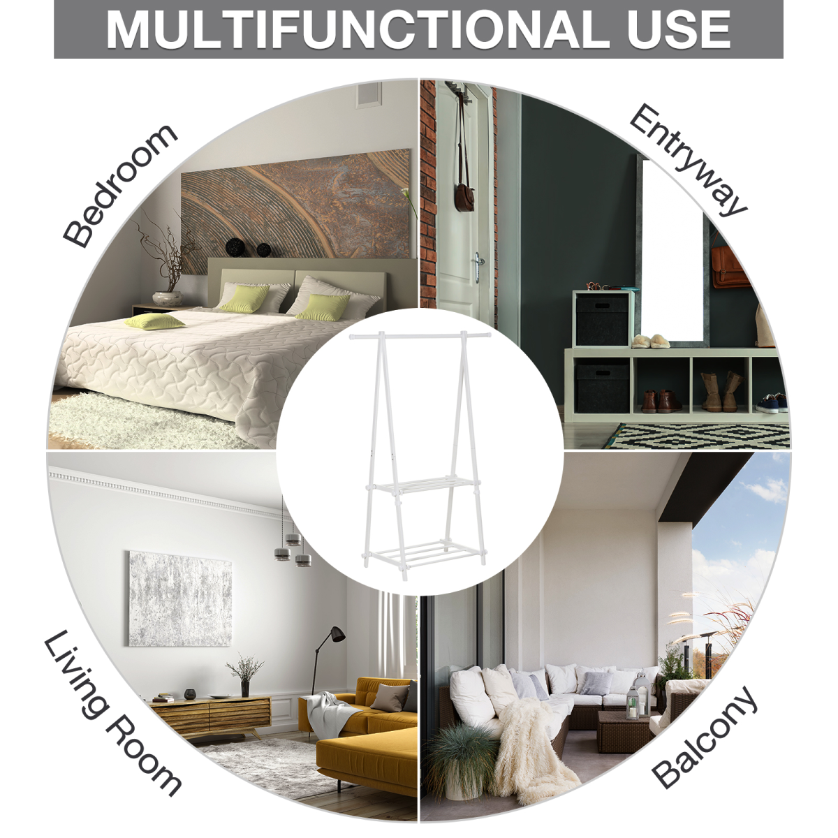 Powder Coated Steel Clothes Rail Tall 2 Shelves Home