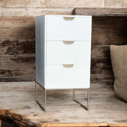 Premium White Wood Bedside Table 64cm Wide Decorative Scalloped Edge Three Drawer For Small Bedrooms