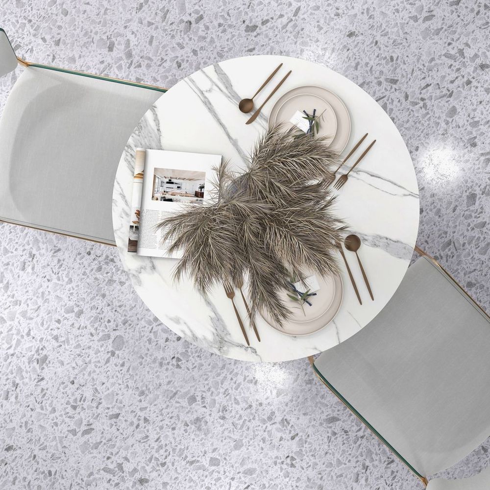 Round Dining Table with Steel Base for Living Room, Dining Room