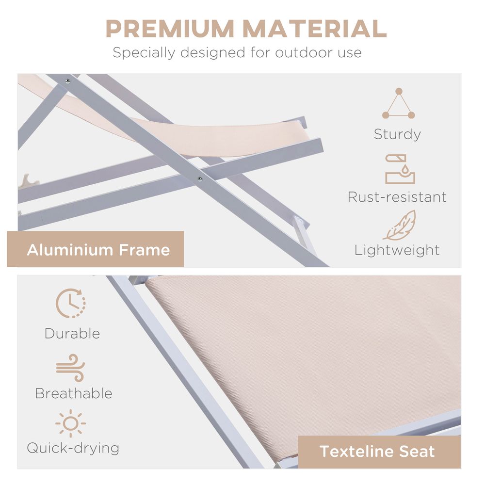 Set of 2 Folding Deck Folding Chairs Garden Patio Lounger, White