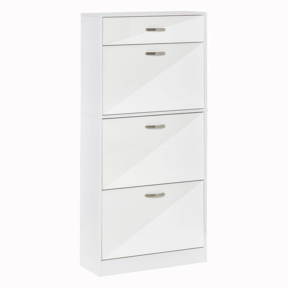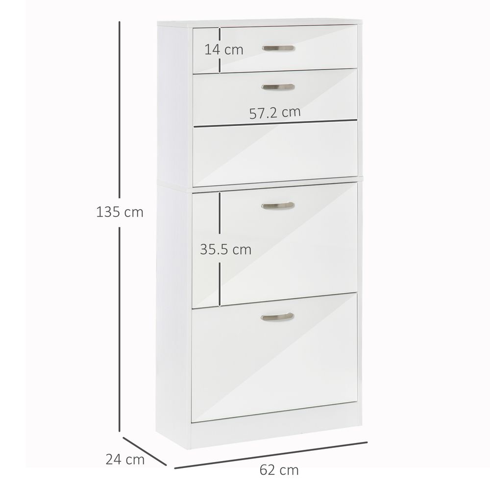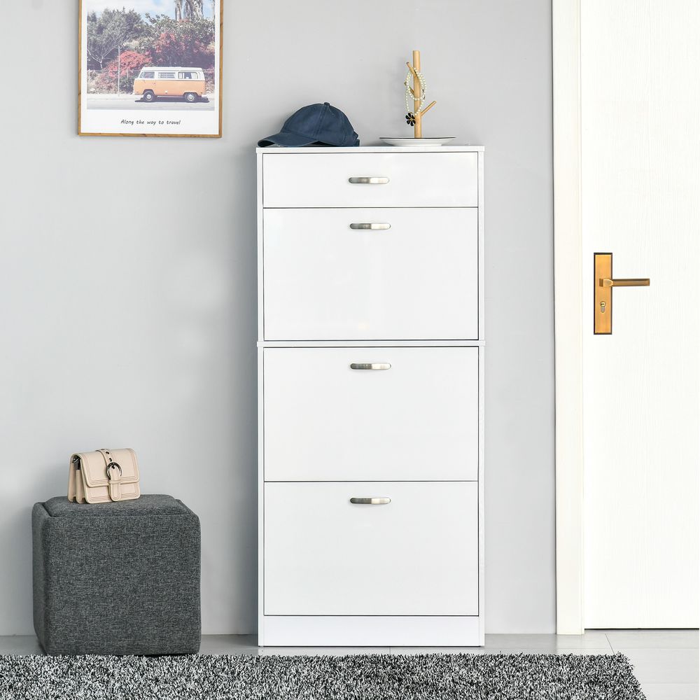 Shoe Cabinet 4 Drawers Storage with Flip Doors Shelves for 18 Pairs White