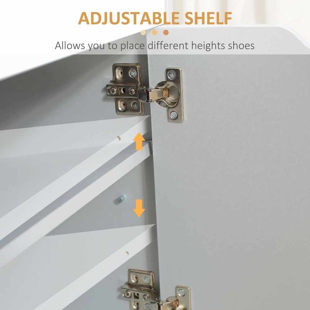 Shoe Storage Bench w/ Cabinet Adjustable Shelf and Cushion for Entryway Grey