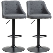 Swivel Bar Stools Set of 2 Adjustable Height Fabric Bar Chairs Grey