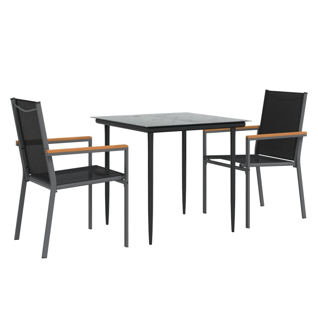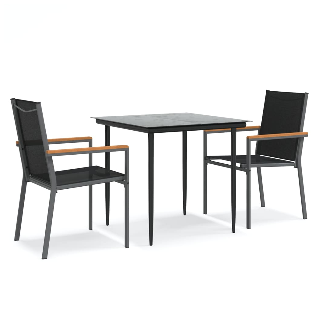 VidaXL 3 Piece Garden Dining Set Black Textilene Outdoor - 3 / 80 cm table length