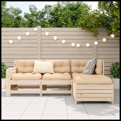 vidaXL 4 Piece Garden Sofa Set 230x230x85cm Solid Pinewood with Cushions for Outdoor Entertaining - natural douglas