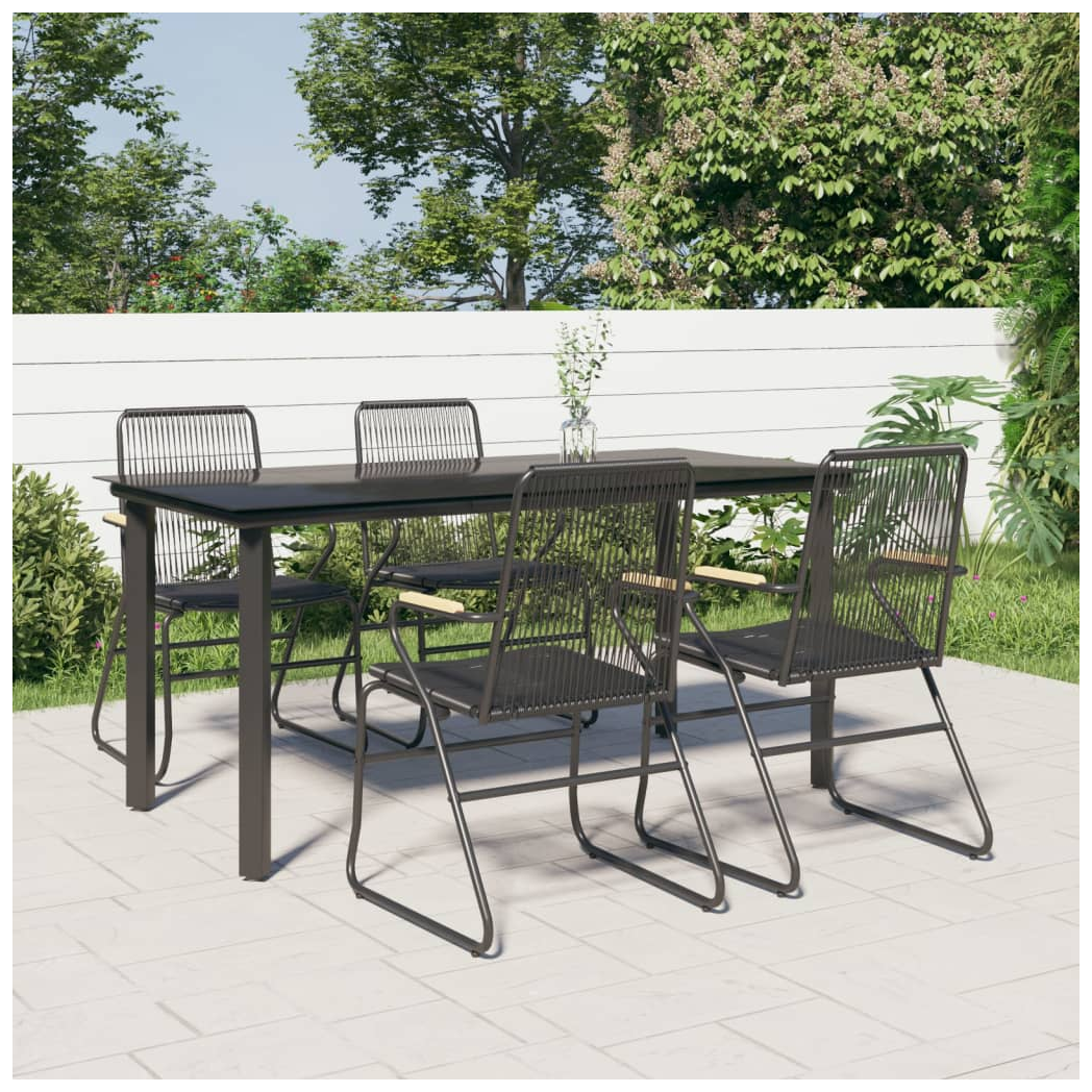 VidaXL 5 Piece Garden Dining Set Black PVC Rattan Outdoor