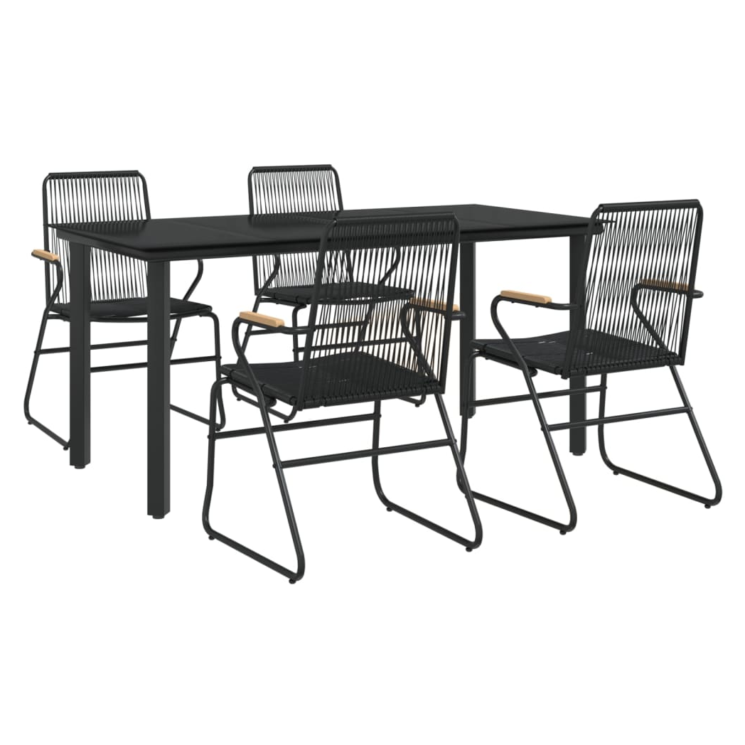 VidaXL 5 Piece Garden Dining Set Black PVC Rattan Outdoor - 7 / 140 cm table length
