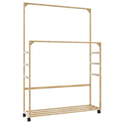 VidaXL Clothes Rack 90x35x155 cm Bamboo Construction With Shelves And Wheels For Small Spaces
