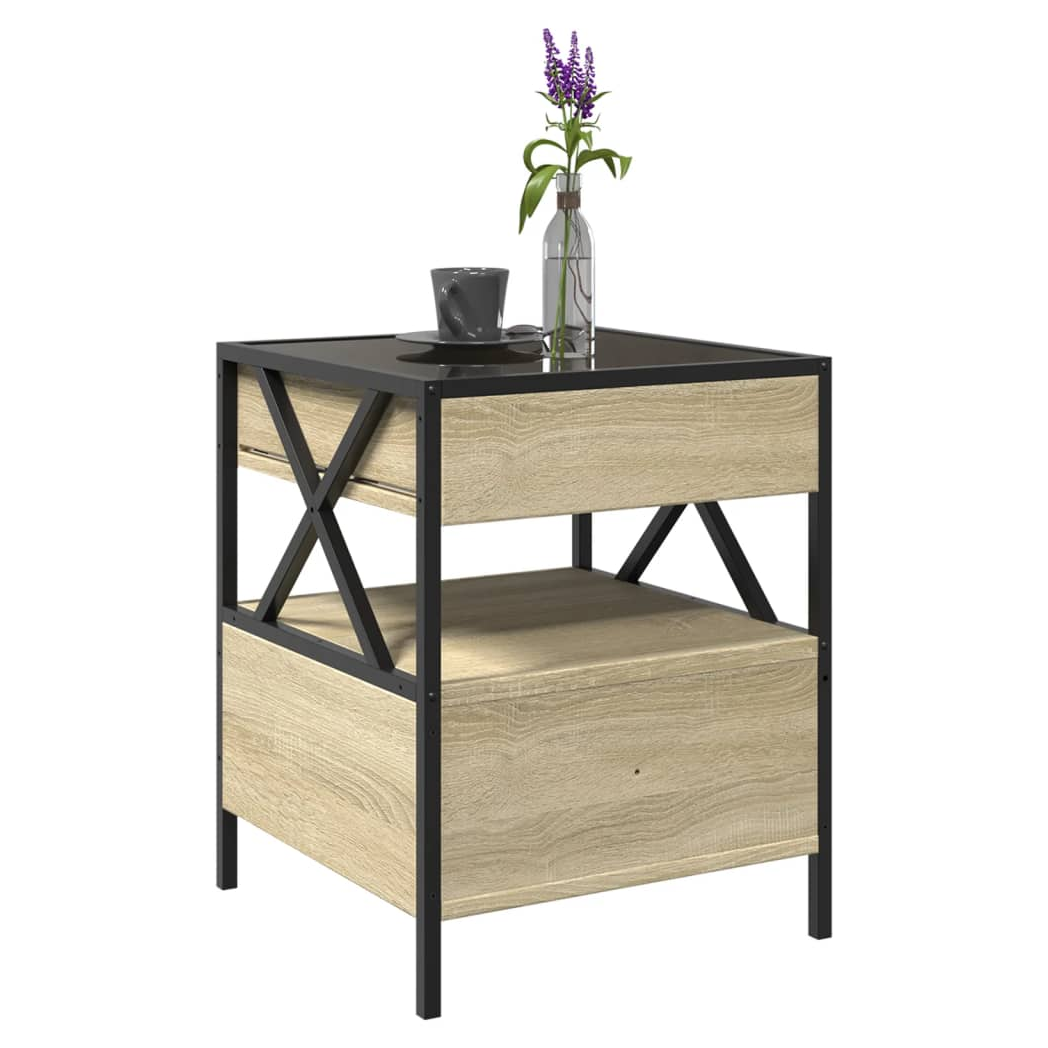 vidaXL Coffee Table 40x40x51 cm Infinity LED RGB Mirror Sonoma Oak For Living Room