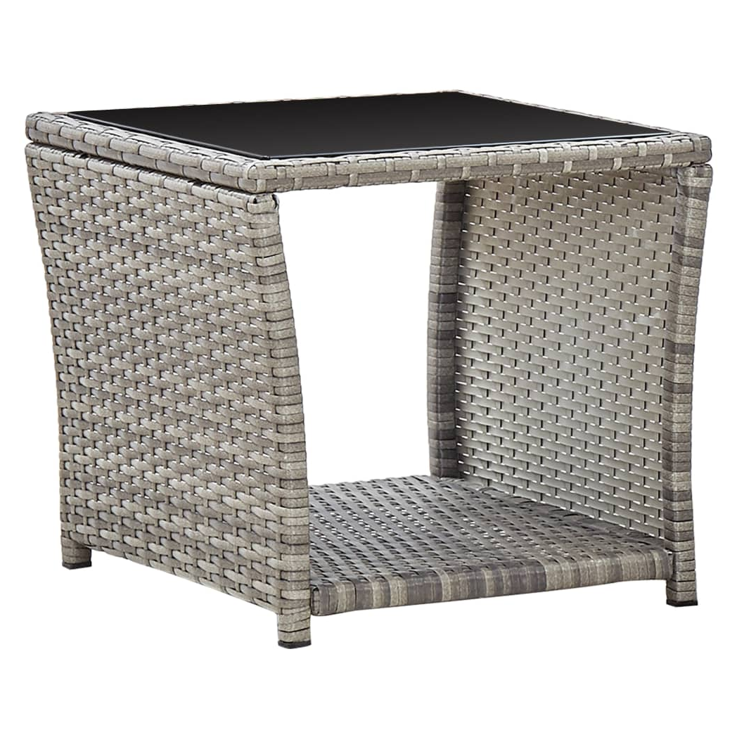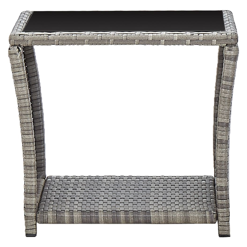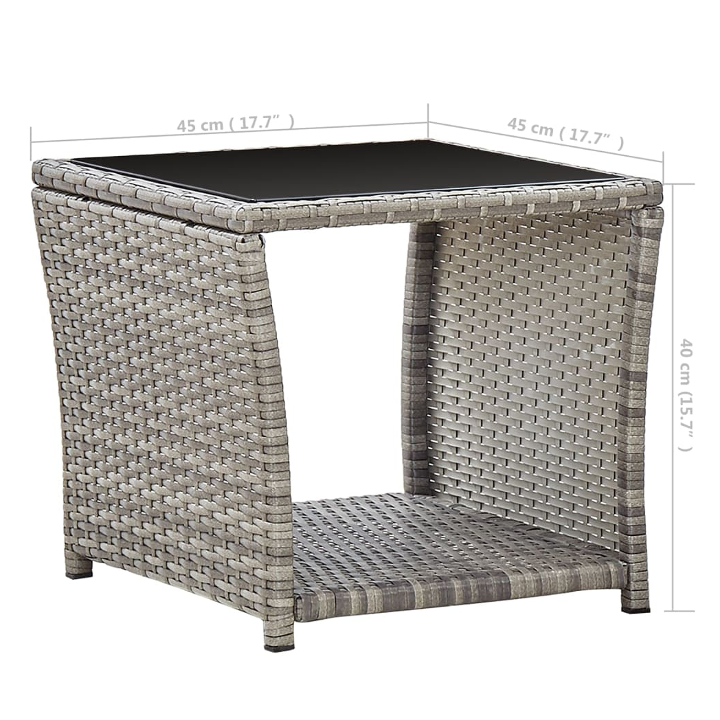 vidaXL Coffee Table 45x45x40 cm Poly Rattan Glass Top Weather Resistant Outdoor Patio - black / solid acacia wood