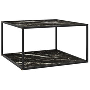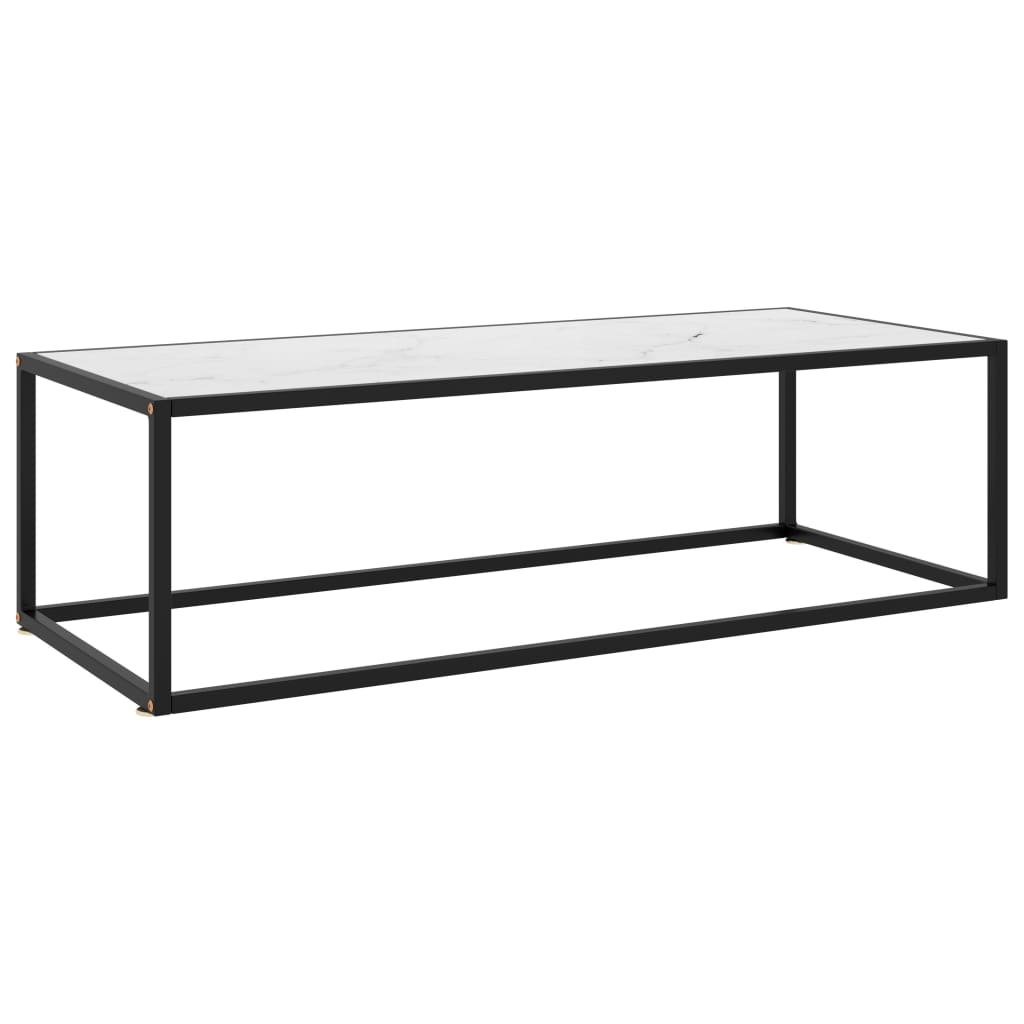 vidaXL Coffee Table 60x60x35 cm Tempered Glass Marble Look Durable Black Steel Frame Living Room Decor - transparent / 120 x 50 x 35 cm