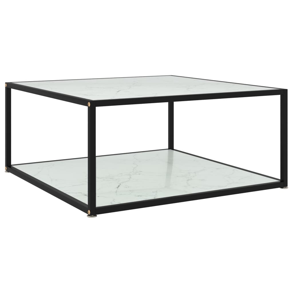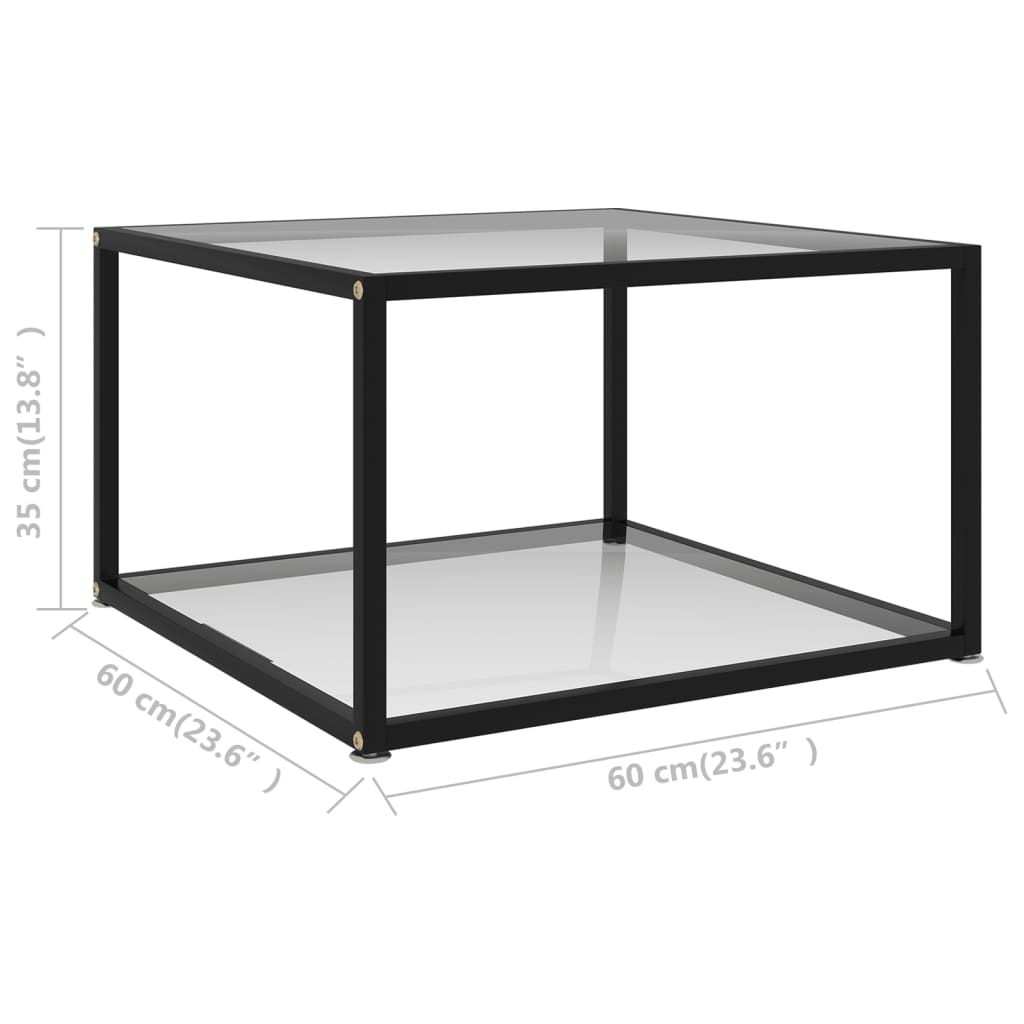 VidaXL Coffee Table 60x60x35 cm Tempered Glass Two Layer Design With Powder Coated Steel Frame For Living Room - transparent / 60 x 60 x 35 cm