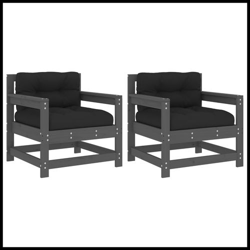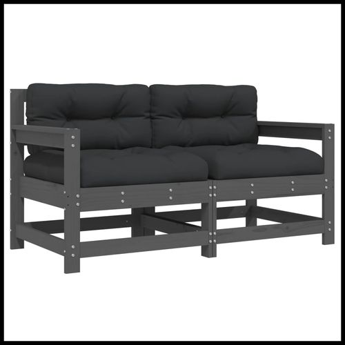 vidaXL Corner Sofa with Cushions 2-Seater Solid Pine Wood for Outdoor Relaxation and Comfort - grey pine / middle sofa