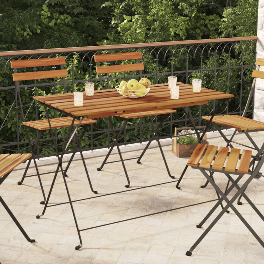 vidaXL Folding Bistro Table 100x54x71 cm Solid Wood Acacia and Steel - black